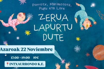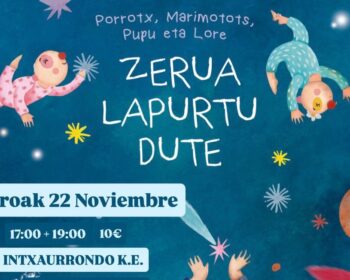 Porrotx, Marimots, Pupu eta Lore pailazoak Intxaurrondon egongo dira larunbatean. ZERUA LAPURTU DUTE ikuskizuna egingo duteEguna: Azaroaren 22aOrduak: 17:00etan (dena salduta) eta 19:00etanNon: Intxaurrondoko Kiroldegian